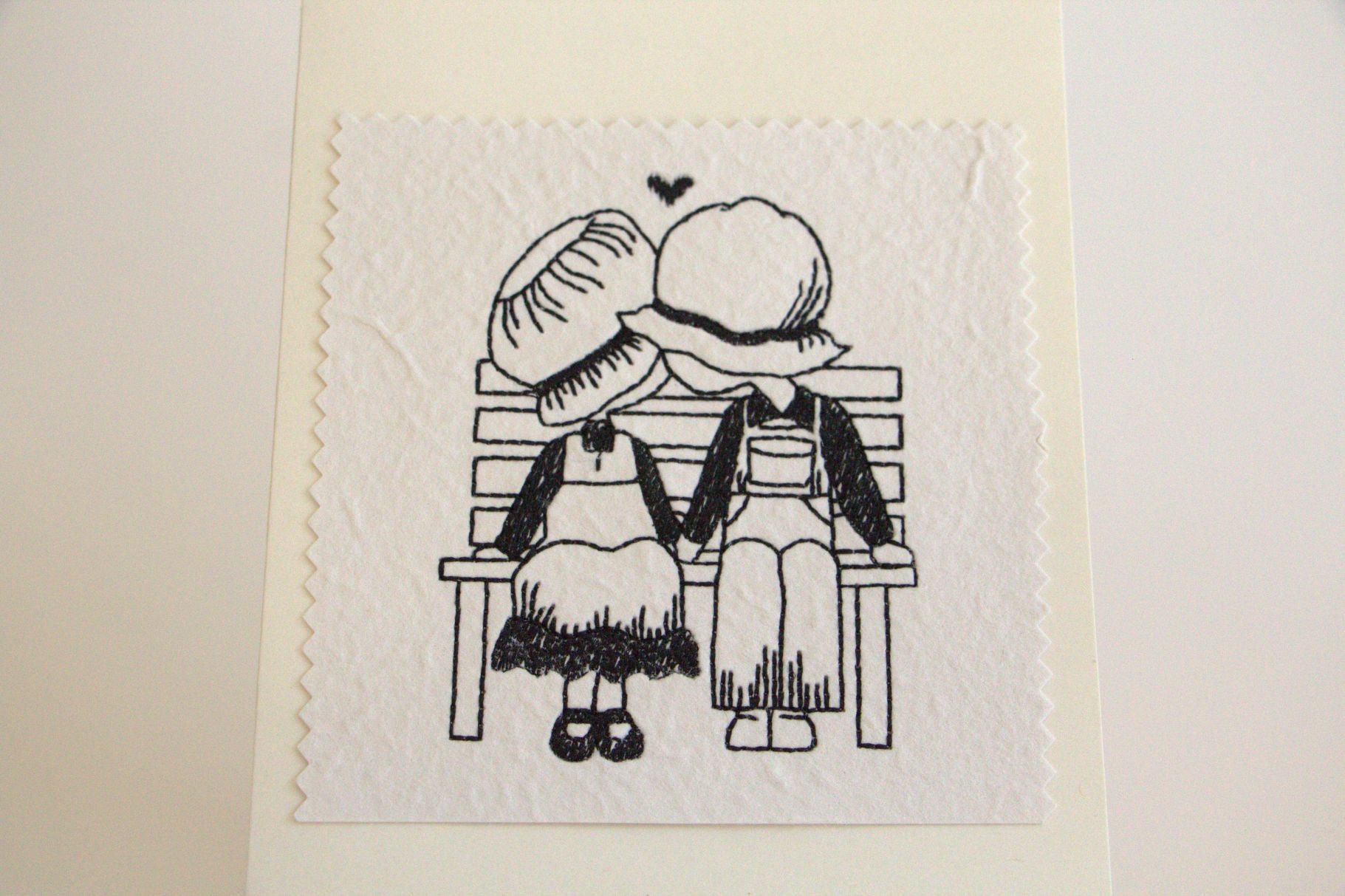 Celebrate the beauty of togetherness with this beautifully crafted, machine-embroidered greeting card. Featuring a nostalgic design of two figures sitting side by side on a bench, it captures the warmth, comfort, and joy of simply being with someone special, a timeless reminder of love, companionship, and shared moments.